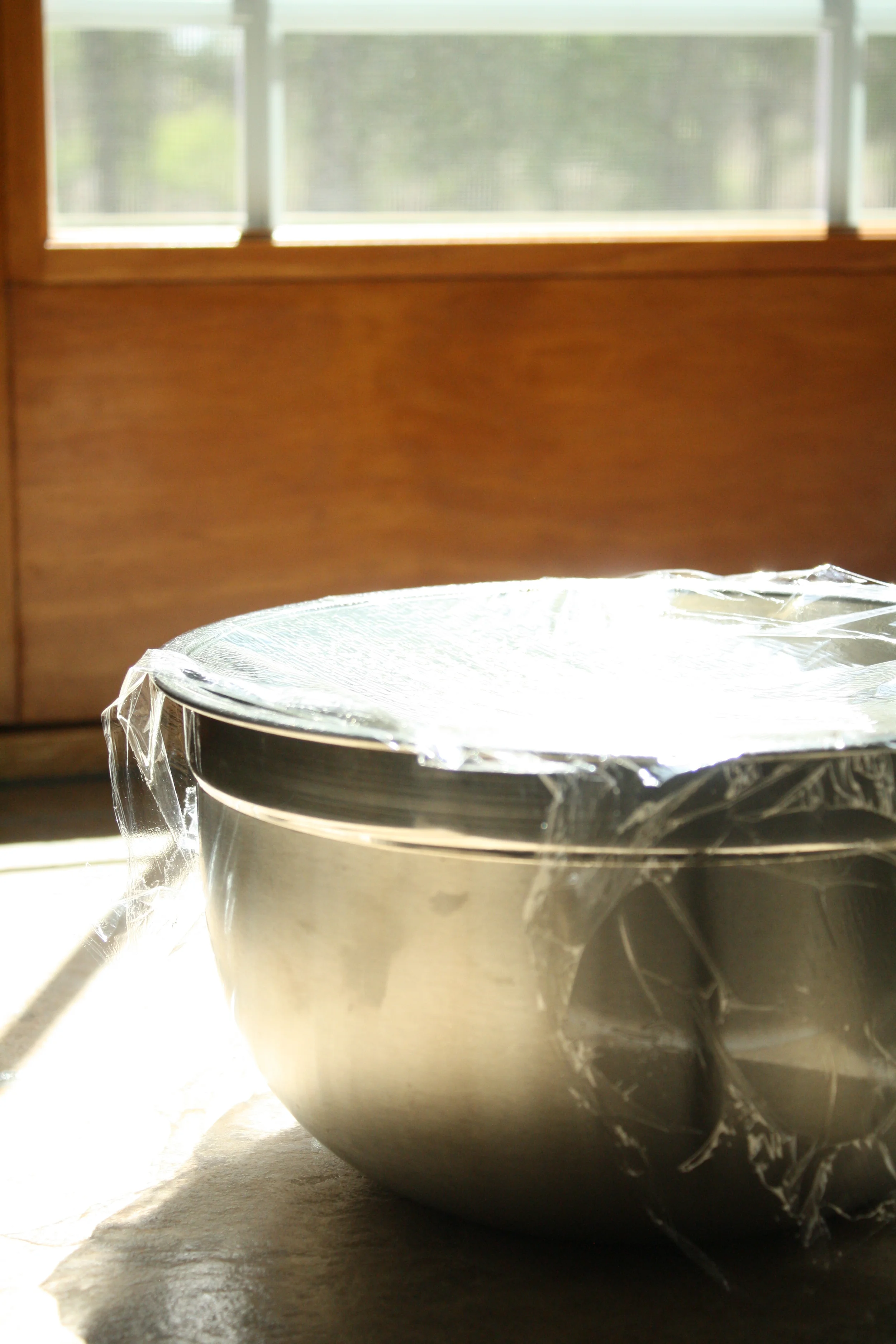 Step 6: Place the bowl in a warm place, such as next to a window on a sunny day, or even outside if it's a warm day. Do not place in the oven...yeast will die over about 100 degrees F. You are aiming for about 80-90 degrees F. Let the dough rise until doubled in size, about one hour.