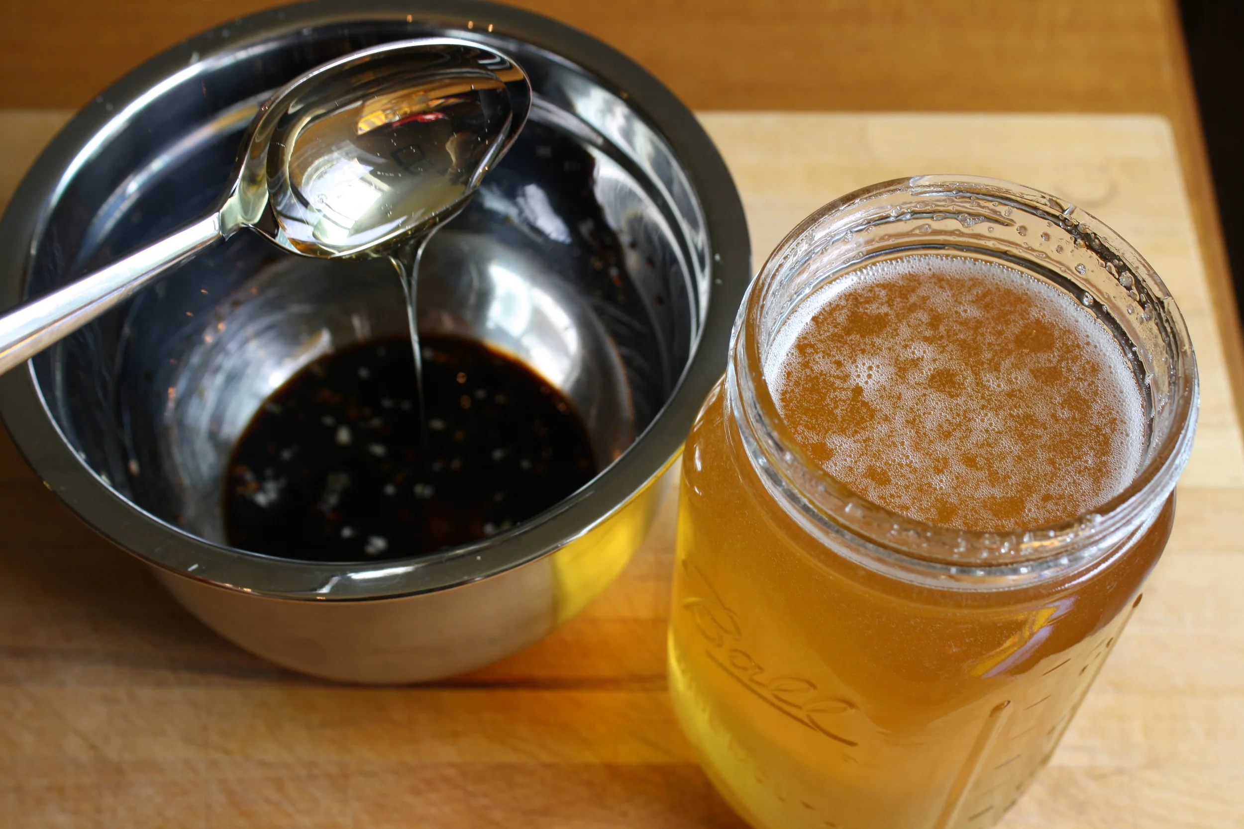 - In a medium-sized bowl, combine the minced garlic, balsamic vinegar, and honey.